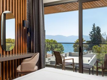 Вид из окна! Или в сад с проходящими работниками или на парковку! территория отеля крошечная! спа салона нет! Выхода к морю нет! только спуск по лестницам с настила! Ресторан работает медленно! Официанты не понимают по-английски за исключением пары человек! по 40 минут ожидание завтрака а-ля карт! Недопонимание по меню! Ошибки в блюдах! Толпы приезжающих местных жителей на завтрак по субботам! толпы приезжающих на ужин, занимающих все места в ресторане-она же столовая для проживающих в отеле! Деревянные лежаки у небольшого бассейна залиты каплями смолы с сосен!