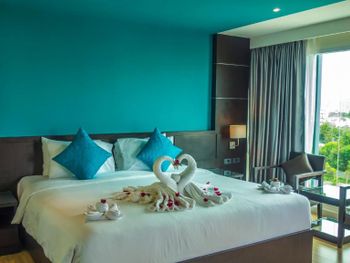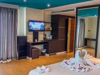 Были в отеле 12 дней.Цена вообще супер была.Все что просил в переписке сделали.Номер на 5 этаже вид на город,заселили сразу же по приезду,Разрешили заехать в номер без оплаты,пока не поменял деньги.Персонал реагировал на все просьбы сразу же.Пляж недалеко неспешным шагом 10 мин .Рядом есть кафешки,7/11,рЫнок и массажные салоны.Бассейн на верхнем этаже ,огромный плюс.В общем нам все понравилась,оценка тверда 4 с плюсом НУ либо 5 с минусом.Спасибо большое за проживание,с удовольствием приеду еще раз.
