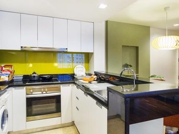 Были вещи, которые очень огорчили. Это посуда… в номере, где есть кухня, а такие номера выбирают не случайно! Нет ножа, разделочный доски и даже открывашки! Посуда для приготовления на столько удачная, что невозможно ничего приготовить… очень плохая ситуация в этом отношении. Тут есть духовка, но нет совсем для нее посуды… есть сковорода, но очень удачная и нет крышки. В общем очень сильно не комфортно на кухне в этом плане, ну и я конечно бы рекомендовала иметь в номерах хотя бы соль. Раз уж есть кухня. И хорошо бы стиральный порошок для машинки Второй огромный минус это кондиционер в спальне, который шумит так, что у тебя болит голова. Спать с этим ужасным шумом просто невозможно. Сильно тяжело… наверно кондиционеры сильно устарели и не чистятся. Свет не слишком хорош, особенно на кухне, тоже важный момент. Дверь на юалкон была сломана и не работали жалюзи на кухне.