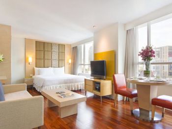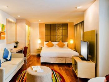 Не понимаю кто и каким образом дал этому отелю 5 звезд. По факту это очень уставшая в лучшем случае 3ка. Рваное напольное покрытие, еле живая сантехника, отсутствие необходимых кухонных и прочих принадлежностей. ОТВРАТИТЕЛЬНАЯ УБОРКА НОМЕРА! Ребенок случайно закатил машинку под кровать - полезли доставать и были в легком шоке: остатки еды, детские памперсы, мусор и прочее под кроватью - ОТВРАТИТЕЛЬНО!!! В общем пожалели, что выбрали этот отель для жилья в Бангкоке.