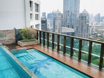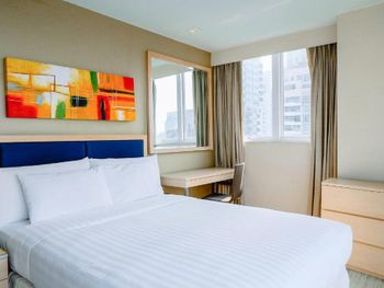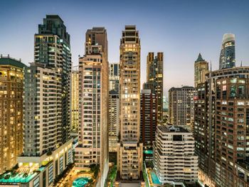 Отель удобно расположен в недалеко от станции BTS Chit Lom, и в пешей близости к тц Central World. Красивый вид из окна(жили на 15 этаже). Завтраки хорошие, 3 вида фруктов, несколько блюд тайской кухни, панкейки, яйца, овощи и салат. С бамссейна на 33 этаже красивый закатный вид. Большие 2 магазина 7/11 находятся в 2 минутах пешкой от отеля. Также был замечен хороший массажный салон - chao9.