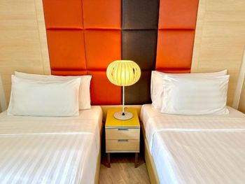 Отель "подуставший", полотенца: всего 1шт на человека -старые, застираные. Постельное белье: всё чистое, но изношенное, даже с дырками. Кондиционер гудит жутко, холодильник вроде работает, но плохо,даже нет света внутри. Вообще освещение в комнате -плохо. Вода с крана - прям с желтизной.