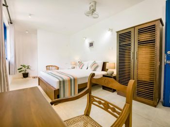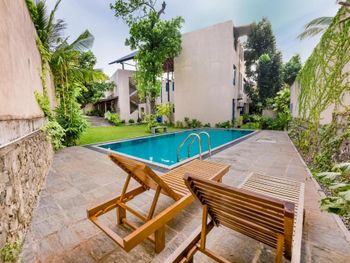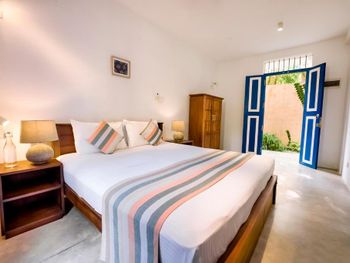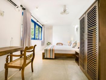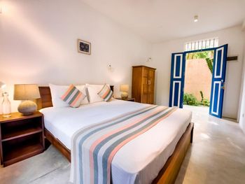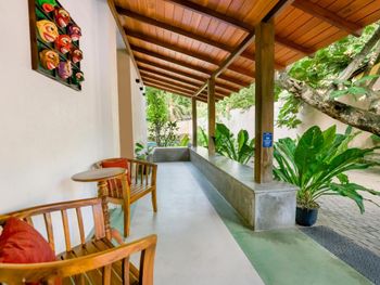 Удачное расположение - до океана 3 минуты и по пути фруктовая лавка, wine shop и кафе. Что ещё нужно?)❤️ Пляж практически без людей 🏖️, но можно прогуляться вдоль к оживленной части Унаватуны. Большая терраса под крышей на 3 этаже, где бегают бурундуки. Вдалеке на деревьях видны обезьяны. Приветливый администратор, помогал чем мог и был очень любезен☺️