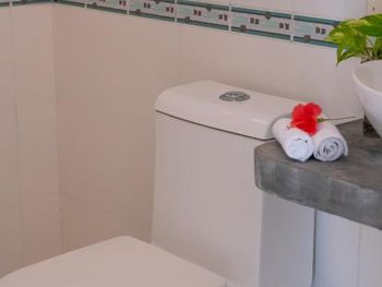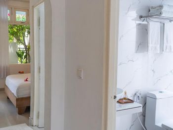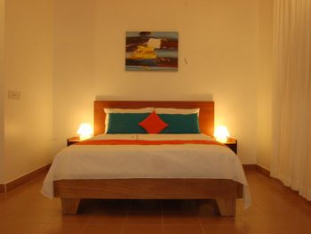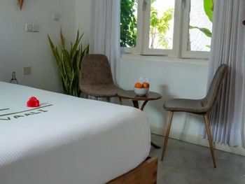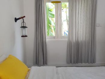 Шикарный душ под открытым небом с отличным напором воды. Удобная кровать, в наличии и кондиционер и потолочный вентилятор. Расположен напротив бикини-бич.