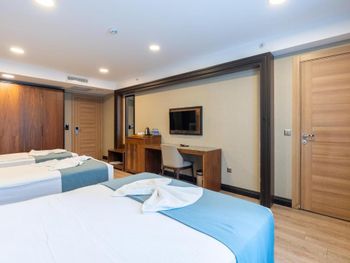 1. Возникло недопонимание при заселении, но после разговора на повышенных тонах проблема решилась (Оплату не хотели принимать картой, требовали наличные) 2. Не берите завтрак, так как в турции есть подобную еду "преступление"... один раз только поели. 3. При бронировании обычно пишут что Хамам за отдельную плату, обрадовались что не нашли этой записи при бронировании, оказалось платный и дорогой. 4. Не налажена работа кондиционеров, чтобы включить, нужно выставить темп-ру и звонить на рецепшн чтобы включили и не трогать больше. 5. Вид из окна - стройка (шумная и пыльная) так что, за балкон тоже зря заплатили.