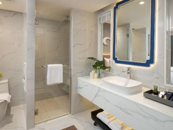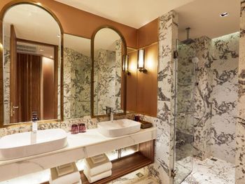 У нас в двух смежных номерах была температура 16 градусов, управление климатом не работало. Дважды звонил и дважды спускался на ресепшн, так ничего по этому поводу не сделали. Только потом предложили мне переехать в два раздельных номера, но мы отказались. В итоге систему подачи воздуха нам выключили полностью, отчего я под утро проснулся. Помыться горячей водой тоже целая проблема, один раз помылся под холодным душем, другой раз открыл воду в ванной горячую и после этого пошла горячая в душе тоже. Очень сильно разочаровался, такой прекрасный отель и так не повезло. Особенно не понравилось как персонал пытался решить наши проблемы- никак.