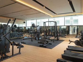 Бесплатно сделали апгрейд до большого номера, мы продляли проживание еще 2 раза и нам оставили этот же номер. Хороший завтрак. Красивый ресторан для завтрака. Низкая цена для такого отеля. Приветливый персонал. Классный спортзал.