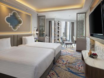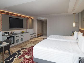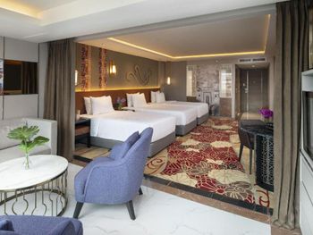 Большой семейный номер, красиво оформлен, всё как заявлено на фото, кровати удобные, чисто. Удобный Шатл до метро и ТЦ каждые 15 минут. Бассейн небольшой, но с малым количеством людей, вода тёплая. В стоимость включены пирожные с 15-16 (фуршет сладостей без напитков). Завтрак разнообразный (вкусные соки,фрукты), много различных азиатских блюд, мест для завтрака не очень много, но персонал занимается рассадкой людей в ресторане.