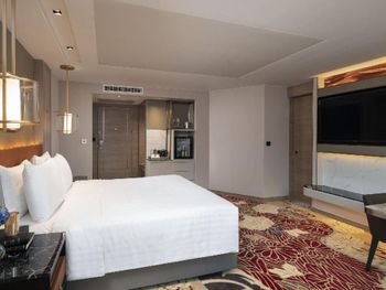 Нам бесплатно улучшили категорию номера. Номер большой, кровать очень удобная. Большой телевизор если кому важно. Хороший вай фай без слепых зон. Разнообразный завтрак, хотя не очень много чистой еды и мясных\рыбных блюд. Красивые интерьеры, хорошая отделка. 4 бутылки воды в день бесплатно. Кофемашина в номере.