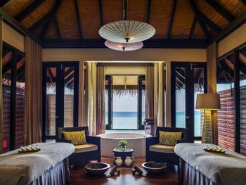 По приезду в отель, заселили в 11 утра, хотя чекин в 14.00. У нас был забронен номер с бассейном на воде ( бунгало с бассейном). Номер не очень понравился: мебель старенькая, расположение водных вилл далеко от главных ресторанов, от рецепции, шумит как оказался не кондер, а фильтр бассейна. По просьбе могут выключить, иначе спать невозможно. Переночевали ночь, переехали на водную виллу ( вилла на воде ) , другое дело 👍! Потрясающий вид на закат ( номера 401-410 ) . Номер большой, мебель новее, просторнее, расположение вилл удобнее в плане логистики. Рядом СПА . Массаж хороший, есть сауна. Массаж 150 долларов с человека, посещение сауны входит. Сауна по-типу хамама ( мокрый пар).