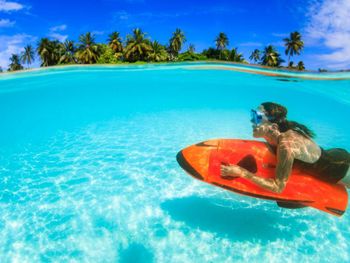 Сам остров зелёный, красивый, три пляжа, возможно больше , мы изучили три. Один пляж великолепная лагуна перед басиком , лицо острова, вода изумительная, но лагуна метров 5 , дальше очень глубоко, поэтому заплывают даже днём акулы, скаты ( лично сталкивалась). Второй пляж очень широкий, красивый, вода потрясающая, есть риф, водится триггер-Фиш, но так как риф, во второй половине дня на поверхность воды поднимаются остатки рыбьих кишечков, чего -то ещё . Третий пляж глубокий, очень комфортно плавать, единственное, что доносится запах гари с соседнего острова по сжиганию мусора. Несмотря на все эти нюансы пляжи и лагуна очень красивы!