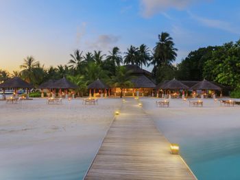 Очень удобный и быстрый трансфер от аэропорта (минут 20 от выхода из аэропорта и вы на месте). Раннее заселение (идеально для рейса Аэрофлота), есть 2 пляжа: с одной стороны с кораллами, с другой - просто песок. Мало живности на суше и в воздухе :) Приятно порадовали средства в душе в полноразмерных ёмкостях. Адекватный ценник (для Мальдив :)) в минибаре. Чисто, уборка 2 раза в день, есть шлёпки и пляжная сумка в номере. Вечером в баре живая музыка.