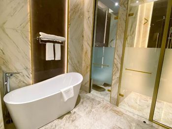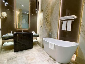Никогда бы больше не остановилась в этом отеле и не из-за отеля,а из-за персонала! Заказала сервис в номер ,несколько раз повторила,что блюда готовить без лука, аллергия! В итоге через 30 минут после заказа перезвонили,сказали,что нет салата в наличии (почему сразу не сказали, не понимаю) ,а остальные блюда принесли с луком, на мои пожелания плевать хотели. Также , перед выездом в аэропорт позвонила на ресепшен, попросила заказать такси к определенному времени , а когда спустилась , машину не вызвали и даже не пытались .. чуть не опоздала на рейс из-за этого инцидента. Номера большие и довольно чистые, но в данном случае рекомендовала бы выбирать st.regis или ruffles hotel . И по наполнению и по обслуживанию , небо и земля!