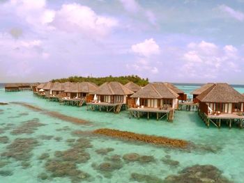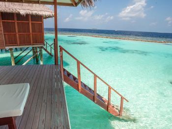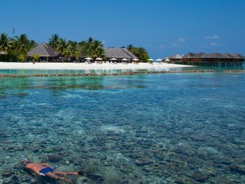 Вокруг классный риф, видели черепаху, ската, маленьких акул (обитают в основном у виллы на воде 202), и много других разноцветных рыбок.