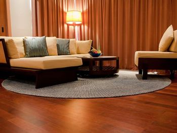 Пол в ресторане выложен плиткой, поэтому большинство гостей ходят по острову в обуви