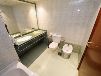 Старая мебель.ковровое покрытие все в пятнах,в ванной плесень.Кондионер не чистился годами,,хорошо чтобыло не так жарко и мы его выключили..Самое ужасное - это ночной клуб ,долбежка до трех ночи.