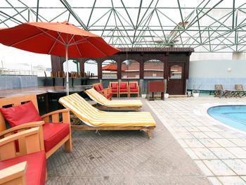 бассейн на крыше, удобное расположение, рядом есть всё магазины рестораны