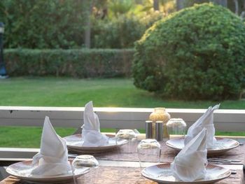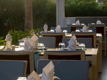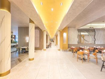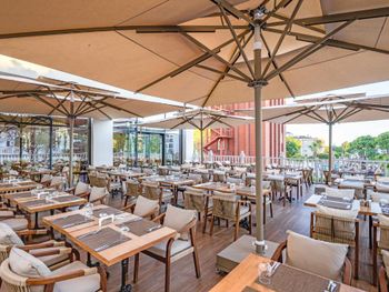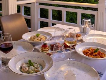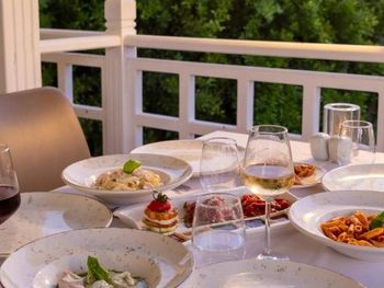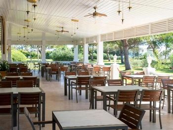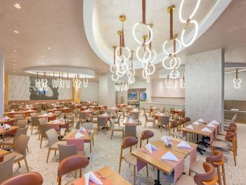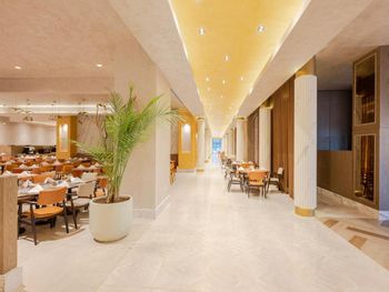 Сервис просто ужас. Основной ресторан- это столовая где кишат люди и мухи, персонала не хватает, столы грязные убирать не кому,стулья-кресла из бархата в жутких вековых пятнах и крошках. Алкоголь весь непонятно где произведен ( кроме вина и пива- это было норм!) В 2018 году были в этом отеле и в этот приезд просто не поняли, как так быстро можно было все испортить.