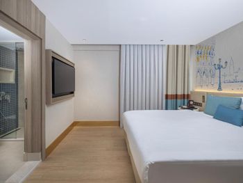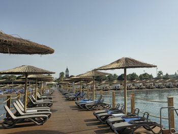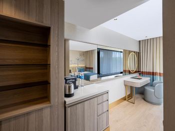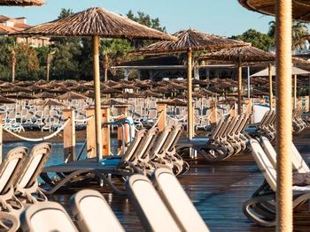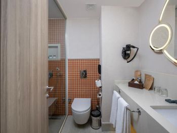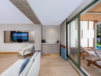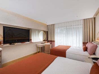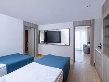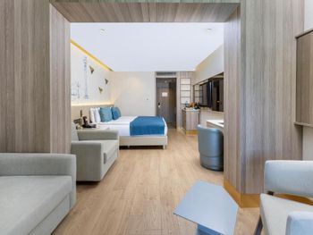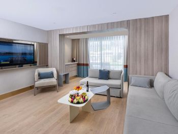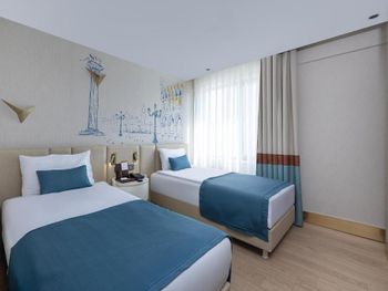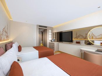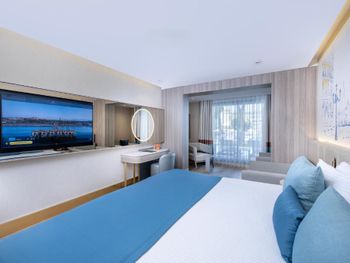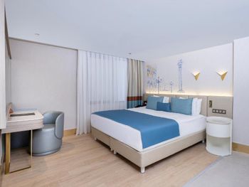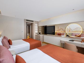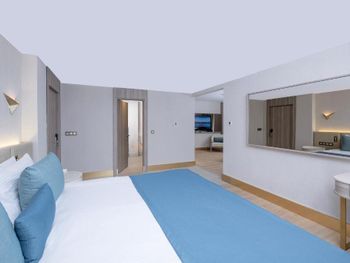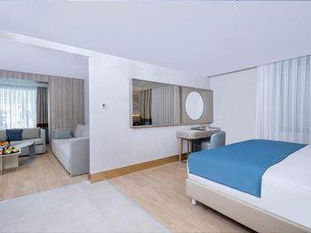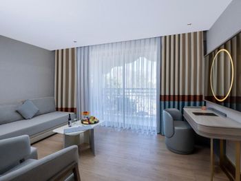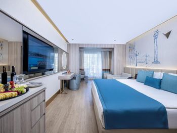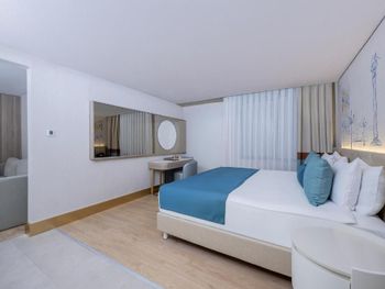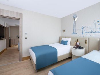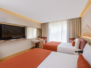 Забронированный трёхместный номер на троих взрослых на деле оказался двухместным с дополнительной кроватью - раскладушкой для ребёнка. На другой так и не поменяли, заявили, что других номеров не бывает. Спорить было бесполезно. Номера и мебель несколько уставшие для заявленных 5 звёзд. Месторасположение отеля очень неудачное, до Анталии далеко и дорого. Вокруг ничего нет, кроме отелей. Второй раз не вернулась бы туда, на мой взгляд, цена завышена