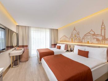 Пятизвездочный курортный отель Venezia Palace Deluxe, спроектированный в виде площади Сан-Марко в Венеции, занимает территорию в 100 000 кв.м. и находится в нескольких минутах ходьбы от собственного пляжа в районе Кунду, в Анталье. К услугам гостей огромный открытый бассейн, крытый бассейн, роскошный сад и просторный спа-центр.
