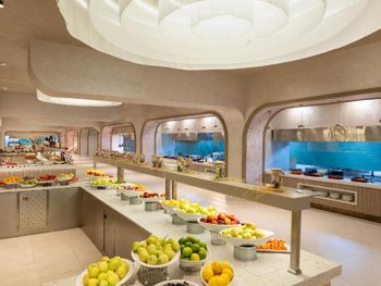 В центральном ресторане Bellini сервируются блюда интернациональной кухни в формате «шведского стола». В ресторанах с обслуживанием по меню готовят блюда турецкой, мексиканской и итальянской кухонь, а также блюда из морепродуктов. Прохладительные напитки подают в лобби, баре у бассейна и пляжном баре.