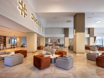 Недалеко от аэропорта, чистая территория, дружелюбный персонал, хорошая анимация по вечерам с профессиональными артистами. Было очень приятно получить комплимент от отеля в свой день рождения. Очень приятный персонал на ресепшене, спасибо Искандеру, он настоящий профи.