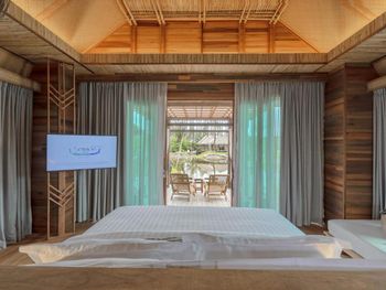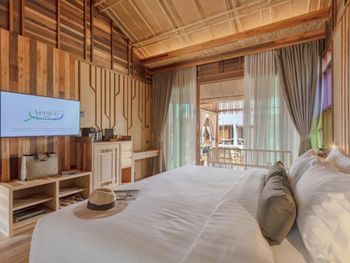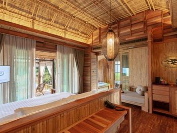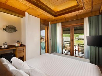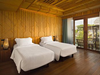 С одной стороны хорошая задумка - виллы на сваях, но тот момент, что стоят они в зеленой мутной воде сразу отбивает желание там находиться. Номер неплохой, рассчитан на пар, но не семьи, по моему мнению. В общем и целом, место тихое, и персонал дружелюбный. Но ощущение, что ты находишься в болоте не покидает. Не стали оставаться на ночь.
