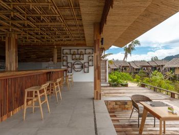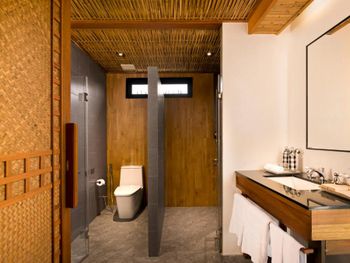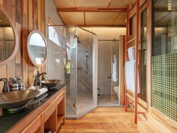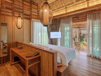 Очень аутентичные виллы. Кажется, что всё из старого обычного дерева, из досочек. Но это не так. У нас было трое детей и две виллы рядом. Они оказались интересными и уютными. Завтраки вполне хорошие. Только одна кофемашина. По водоему плавает симпатичный ящер чуть больше метра, есть колибри и зимородки. Обезьян мы не видели и наверное это хорошо. В предыдущем отеле на Рейли банда обезьян ворвалась в наш номер и они были немного настойчивы и чуть капельку навязчивы. Вариант отеля сильно на любителя. Поэтому и отзывы разные. Надо быть на авто или байке. Мы о 2 ночевках не жалеем.