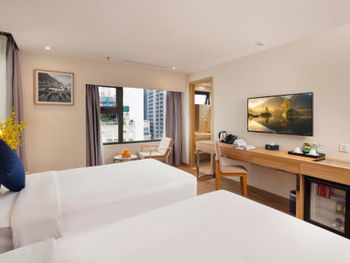 Отличный городской отель, расположен в тихом месте, но близко и пляж, и всевозможные магазины, рестораны, аптеки. Приветливый персонал, хорошая звукоизоляция, очень хорошие завтраки, в отеле чисто. В общем и целом, так как в интернете мало информации, то отель приятно удивил. Большое спасибо за наш хороший отдых! Một khách sạn tuyệt vời của thành phố, nằm ở một nơi yên tĩnh nhưng gần bãi biển và có đủ loại cửa hàng, nhà hàng, hiệu thuốc. Nhân viên thân thiện, cách âm tốt, ăn sáng rất ngon, khách sạn sạch sẽ. Nói chung, vì có rất ít thông tin trên Internet nên khách sạn là một bất ngờ thú vị. Cảm ơn bạn rất nhiều vì kỳ nghỉ tốt đẹp của chúng tôi!❤️