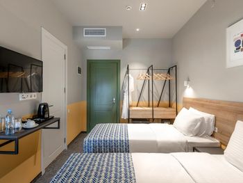 Действительно отличное местоположение , номер с видом на город просто супер 🙌 в номере прохладно и отлично работает кондиционер ( в жару +34 самое то!). Есть все необходимое в номере , и вообще к чистоте меньше вопросов. Чистое подушки, спать комфортно было. На завтраке есть все необходимое , шведка очень меленькая , кофе растворимый , некоторые блюда меняются , мало фруктов , в целом нормально перекусить можно , мне нравились тосты 😋Молодой парень который нас заселял в день приезда очень милый ☺️