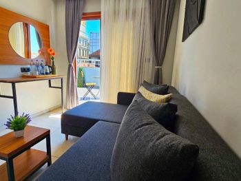 Район сомнительный, рядом какие-то бордели с непонятными то ли женщинами, то ли мужчинами, которые ходят в вечернее время полуголые. Достаточно шумно, так как рядом куча баров. Очень расстроило, что за 6 дней ни разу не убирались в номере, не меняли полотенца и постельное белье
