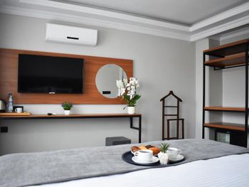 Качество ремонта очень плохое, все неаккуратно, это очень портит впечатление о номере. Очень шумно, под окнами сидят именно по ночам. Днем все спокойно. Матрас очень жесткий, я таких никогда не видела, все время тело затекало. В общем поспать тут не удастся вообще. Одеяло очень тяжелое, хотя кто то такие любит. Кондиционер тоже оооочень шумит. Ко всему прочему использованы самые дешевые материалы и мебель. Муж сел на кровать, не прыгнул , ничего такого, просто сел и она сломалась. Там оказывается был перепаяный каркас без усиления. Нас переселили в худший и меньший номер. И когда мы попросили выехать позже, нас попросили заплатить чуть меньше , чем полные сутки. Лояльность нулевая….