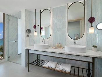 1. Нужно убирать пляж во время отлива 2 раза в день. Пластики и куски кирпича неприемлемы. 2. На сайте нужно поставить честные фото, а не 0,5, которые создают ощущение простора, которого нет. В детской нет окон вообще, хотя на сайте окно есть. Видимо дизайнеры и рисовали, а потом не сложилось. На вилле территория вокруг бассейна такая маленькая, что даже пройти вокруг безопасно нельзя. Помещаются или лежаки или диван. В детской нет окон, хотя на сайте есть. Мы были в вилле 902, потом переехали на 904. Большое разочарование. Не стоят своих денег. Вид на стену!!! В 5 метрах. Нужно работать с озеленением стен, чтобы было на чем остановить взгляд и поместить реальные фото. Вилла 902 вообще смежная с другой. Удручающее зрелище, если Вы не компанией и не объединили 2 виллы. 3. Сделать доступными все блюда онлайн. Пересмотреть цены. Цена на детские мороженое 80 Батт, на взрослое 120 Батт. При этом порция одинаковая!! И детям считают по взрослой цене, если Вы перед этим не попросили детское меню. Через раз пиццы в меню доставки нет, но если позвонить по телефону - есть. Карбонара и жареные кальмары по телефону есть, а меню доставки нет. Нужно сделать, чтобы везде все было. Очень много неудобств для жителей вилл. Лучше брать несколько номеров или смежные, если Вам не принципиален личный бассейн: 4. В гостинице нет обменника и даже 100 долларов Вам не поменяют. А наличными можно платить только в местной валюте. 5. Холодильники не достаточно охлаждают. Даже манго в упаковки и йогурты за 2 дня испортились. Больше ничего не покупали.