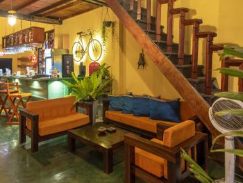 Очень вкусные завтраки (большой выбор), бильярдный стол, пинг-понг, интересный интерьер и внутренний дворик, отзывчивый персонал, близко к пляжу
