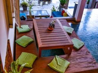 Сад при отеле аутентично и красиво оформлен различными элементами декора, что-то этно-модерновое. Бассейн небольшой, но комфортный и чистый.