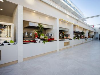 На территории отеля работают: Volare – главный ресторан, обслуживание «шведский стол», блюда национальной и интернациональной кухни. Ресторан Sense Snack, кафе Aventador, кондитерская, пляжный ресторан. Рестораны с обслуживанием по меню: Roma итальянский ресторан, Masmavi рыбный ресторан. Есть лобби-бар, бар у бассейна, бар на пляже, диско-бар.
