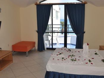 Попросили заселить нас на сутки раньше,так получилось.. (( другой отель подкачал. Заселили без проблем, номер с видом на море, порт и корабли !! Оочень видовой номер! Вот прям шикарно. В номере просто,слегка потерто но чисто!! Убирались норм. Питание понравилось! Шеф повар баловал барбекюшками.. была рыба не раз. Очень много зелени! Вечером дискотека.. Жили четыре ночи, не грустили).Отель советую! Всем добра и счастья!
