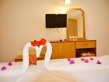 Обычно выбираю отели в Букинг.ком с оценкой не менее 8. Здесь настораживает "шестерка", потому решили "забукать" на 1 ночь. Нужен был недорогой отель на первой линии с собственным пляжем. В итоге продлили проживание ещё на несколько дней. Понравилось абсолютно все, особенно полный пансион за 40 дол. дубль номер. Отличное вкусное питание без алкоголя, то что надо! Пляж рядом - 20 м от столовой. Интернет в лобби и баре, но это даже к лучшему, в номере проводили время без телефонов! Просто супер-отель на свои деньги!