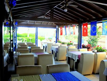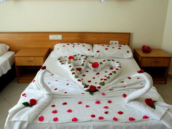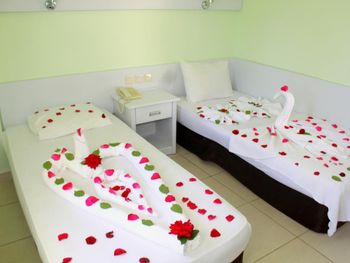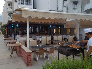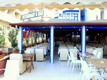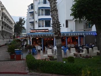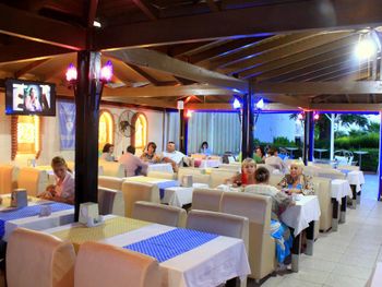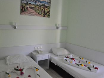 Отель небольшой.Для нас это плюс.Сервис ненавязчивый. Питание вполне хорошее. Часто на ужин давали рыбу очень вкусную.Спиртное мы употребили пару раз-красное вино (оно молодое как нам показалось, не выдержанное.Когда надумали попробовать еще раз ,его то его уже не было.Предложили белое.Но мы его не пьем. Городок очень красивый.Все в пешей доступности.Мы обошли его вдоль и поперек.Все время ходили пешком (несмотря на наш солидный возраст (за 60 лет),а лежать все время на пляже и жиреть не рекомендуем после столь обильной пищи.Вот почему на пляже нас поразило столь большое кол-во людей с сильно лишним весом!Прекрасный базар по понедельникам продуктовый,по вторникам вещевой.Даже гораздо калоритнее,чем в Анталии.Да и погода в октябре стояла отличная все дникомфортно теплая.Ни разу не было дождя и шторма.Купались каждый день до конца пребывания