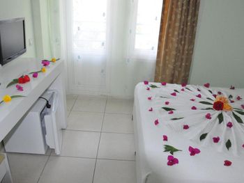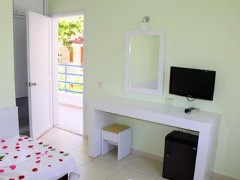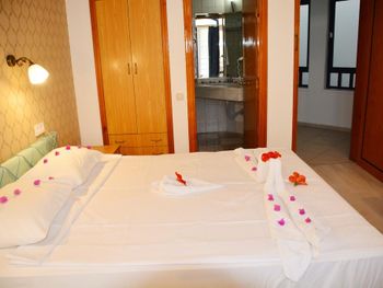 Нас немного привело в недоумение то, что однажды ,придя с пляжа обнаружили свой номер открытым!(уходя мы его 100 % закрыли).Горничной на этаже не было.Так что списать на то,что она его собиралась убирать или уже убрала и забыла закрыть не получается.(Номер в этот день не был убран) Что это было мы так и не поняли и выяснять не стали.Просто приняли к сведению,что надо быть осторожнее! В прошлом году в Анталии у нас вскрыли номер и сломали замок. и все это происходило ближе к нашему отъезду! Плохо еще то,что у отеля нет своего спуска к воде,как у соседнего пляжа.(берег ведь не песчаный,а каменистый!) И еще один минус - это слишком громкая музыка и крики по ночам подвыпивших людей (часов до 2-4) под балконами.Это мешало спать!