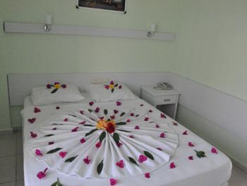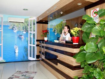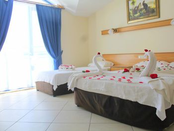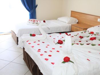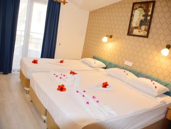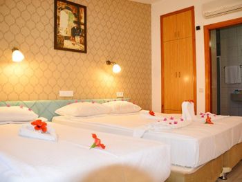 Это маленький,уютный,семейный отель прекрасно расположен, прямо в центре Кемера на первой линии. Свой пляж с навесами и лежаками. Питание скромное, без изысков, но голодными не останетесь. Всё свежее. Много овощей, была рыба на гриле несколько раз , курица в разных вариантах, голубцы, долма, супы. Номера достаточно просторные. Всё, что я просила, было мне сразу предоставлено . Атмосфера в отеле приятная, дружественная. Без пафоса, по-семейному.