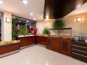 Продукты и напитки скудные, не лучшего качества и, мягко говоря, не совсем свежие. "Кофе" здесь называют жидкость бурого цвета и неприянтого запаха, пить невозможно.