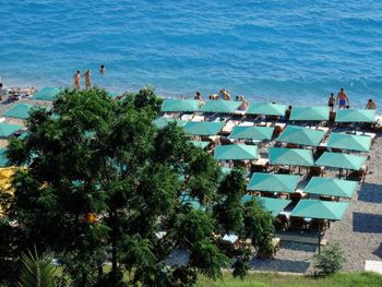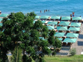 Пляж маленький, заполнен людьми. Не то, чтобы лечь - пройти негде.