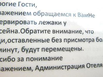 невыносимо громкая музыка до 23 часов и даже позднее, засыпать с ребёнком приходилось под ласковый май и виагру. на пляже лежаки выставлены так, что даже плюнуть негде, в номерах очень тесно, старомодно, старая сантехника, все такое неприятненькое слегка, присутствуют запахи, обветшалость; соотношение цена / качество вообще не соответствует реальности; интернет бесплатный только в фойе, и он почти не грузит.