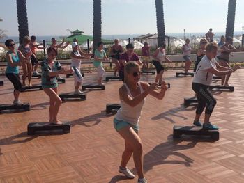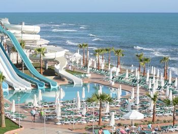 Мутный бассейн( что и понятно при таком Количестве народа) , очень много людей , на не очень большой территории.