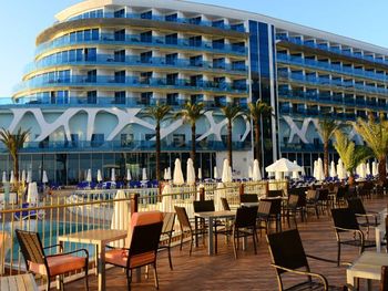 В главном ресторане накрывают завтрак, обед и ужин в формате "шведский стол". В 3 ресторанах с обслуживанием по меню подают блюда османской и итальянской кухни, а также кушанья, характерные для Дальнего Востока. В барах можно заказать разнообразные алкогольные и безалкогольные напитки. Также здесь работает винный магазин.