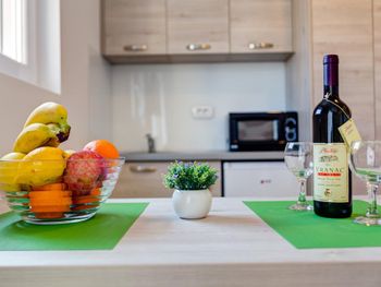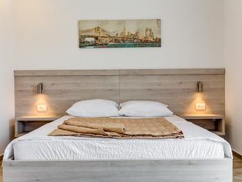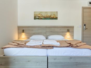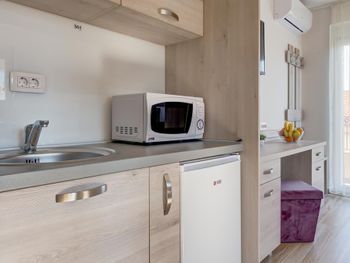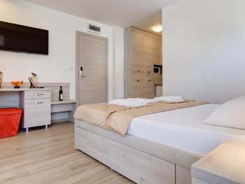 Отличные апартаменты по приемлемой цене, уборка и смена полотенец каждый день, WiFi, есть посуда ложки, вилки, тарелки, стаканы,нож. Очень доброжелательный персонал. Недалеко от пляжа, рядом много магазинов и кафе. Рекомендую.