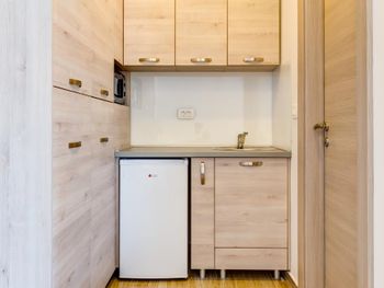 Был небольшой холодильник, микроволновка (плиты не было, если хотите готовить, то скорее разогреть получится)