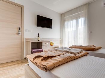 Комнаты очень чистые, каждый день убирались. К каждому номеру есть маленький балкон, где можно посидеть вечером. Вайфай работает хорошо. Имеется лифт, можно подняться с чемоданами на.3 этаж без проблем. Персонал на ресепшне очень гостеприимные и приветливые. Лучшая находка за свою цену. Если вернусь в Будву, то именно в этот отель!