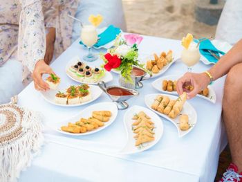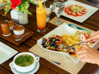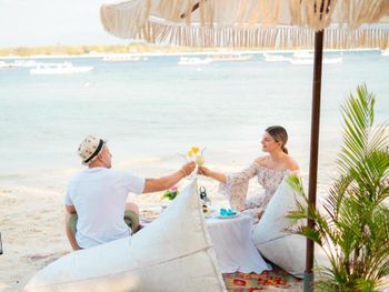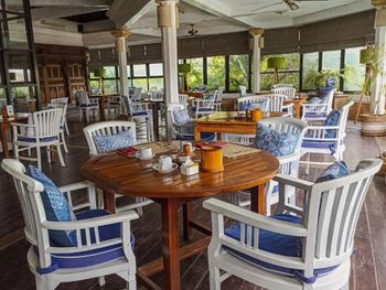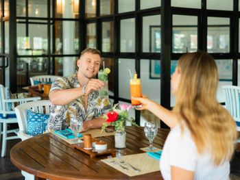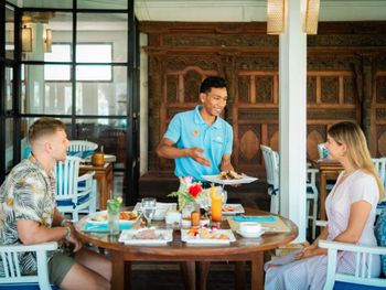 В ресторане курортного отеля с видом на океан подают блюда индонезийской и средиземноморской кухни.
